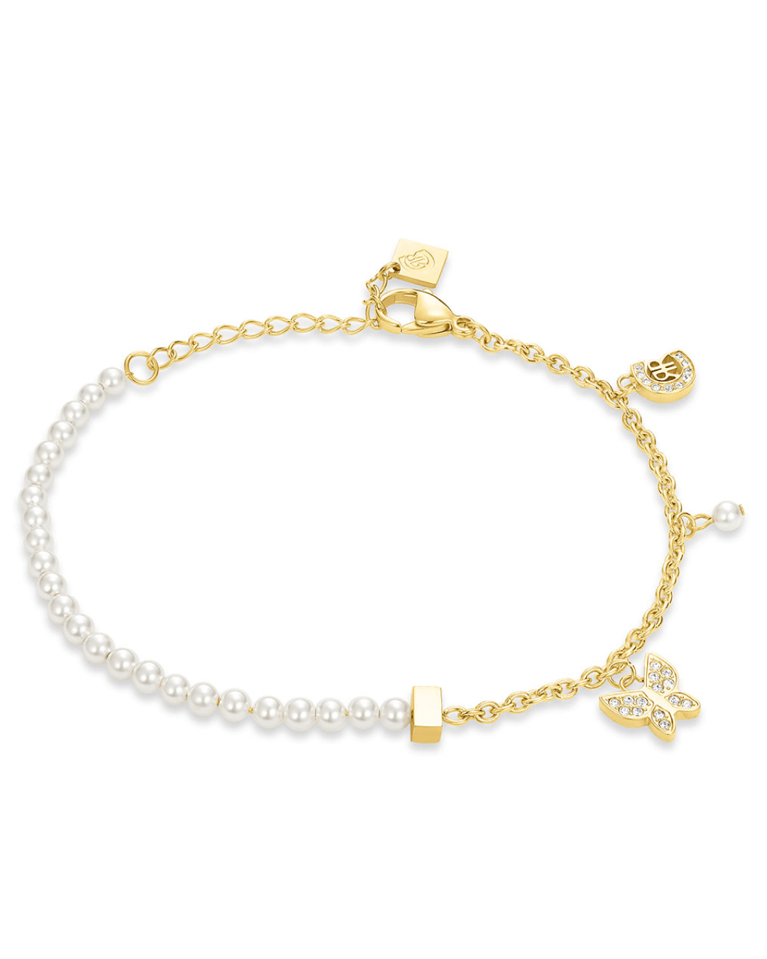 Made of gold-plated stainless steel at warm yellow gold tone, the bracelet features bright white zircons, which add elegance and feminine finesse. The chain design gives it a timeless style, making it ideal for both everyday use and more formal occasions.