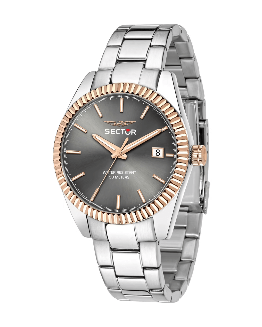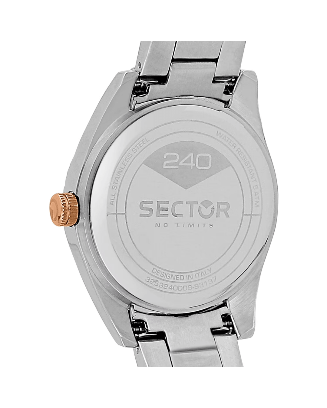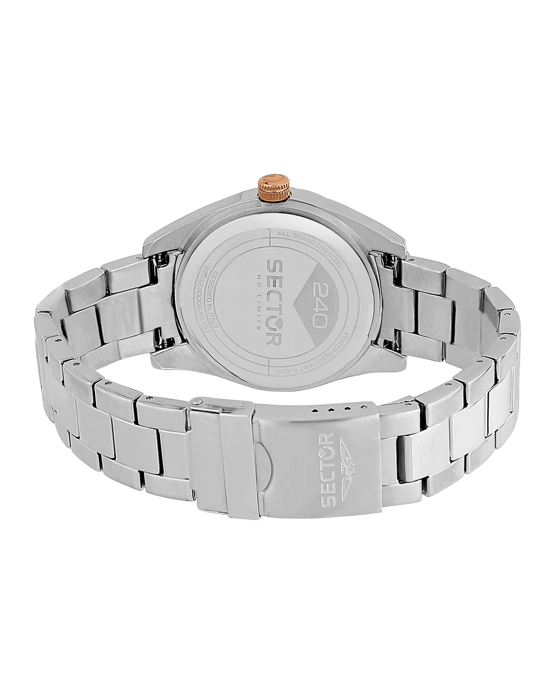 The SECTOR 240 R3253240009 is a men's watch combining sport elegance and modern design, reflecting its philosophy Sector – No Limits. The harmonious contrast of silver with the pink gold details gives it a luxurious and dynamic look, making it the perfect choice for any occasion.
